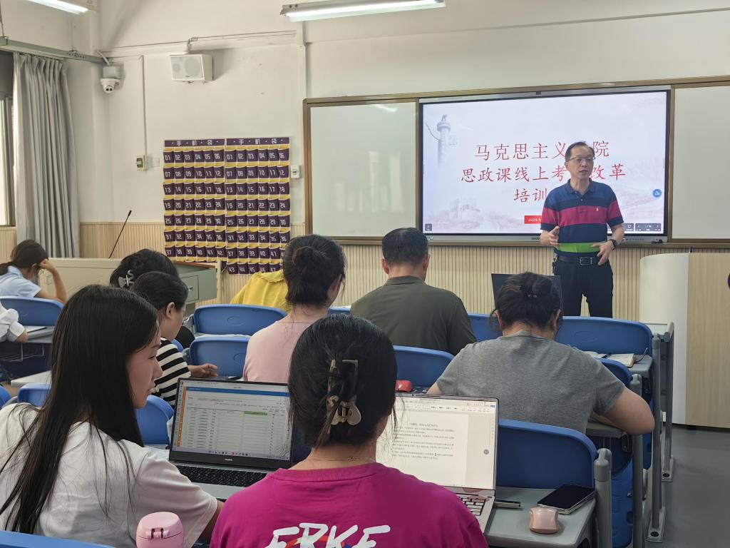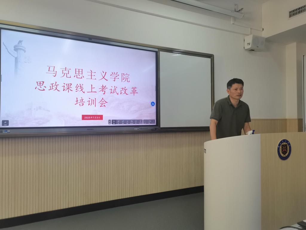 2025年7月3日下午,全讯800cc大白菜官网在综合楼B-202教室隆重召开思政课线上考试改革培训会。会议旨在推动思政课教学改革,推进在线考试工作,帮助教师熟练使用超星学习通在线考试模块的相关功能。学院邀请超星集团讲师及湖北工业大学全讯800cc大白菜官网副院长石裕东教授为全院教师及下学期承担《形势与政策》课程的兼职教师开展学习通线上考试系统现场培训。会议由李学锋院长主持,教务处龙婷副处长出席会议。